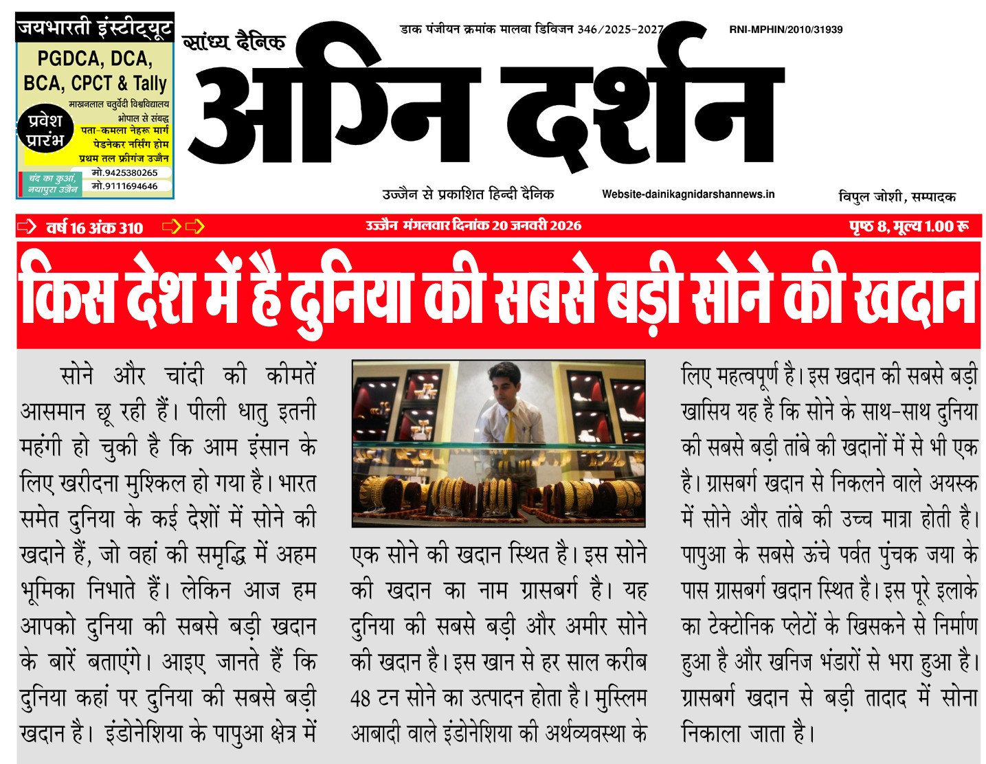 संपादक दैनिक अग्नि दर्शन
