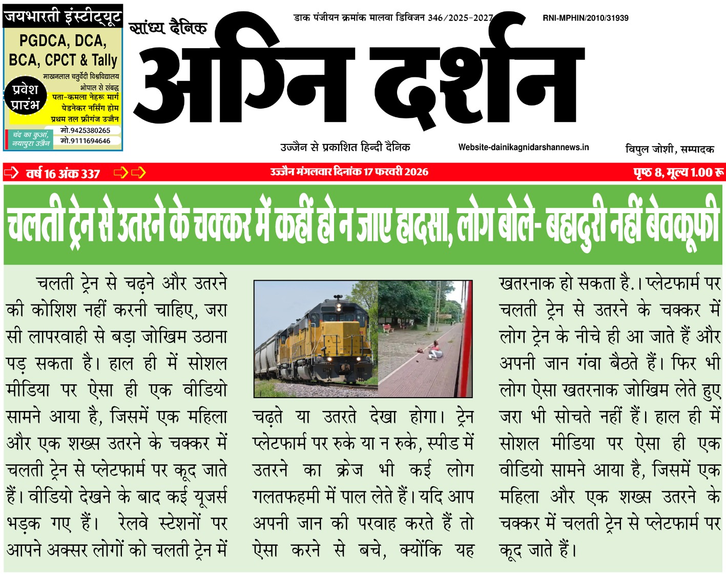 संपादक दैनिक अग्नि दर्शन