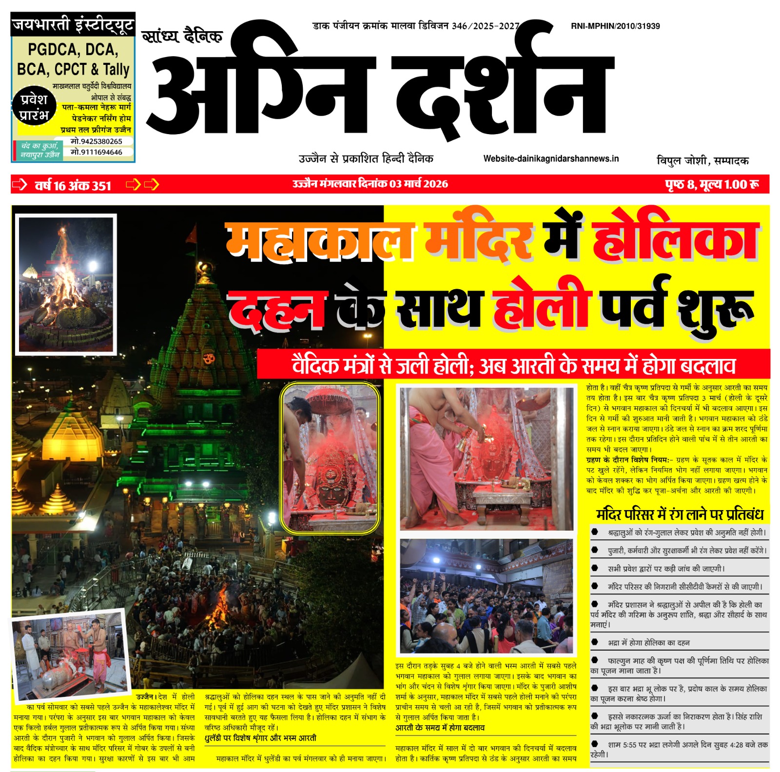 संपादक दैनिक अग्नि दर्शन