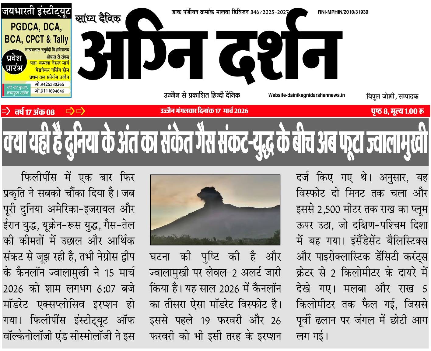 संपादक दैनिक अग्नि दर्शन