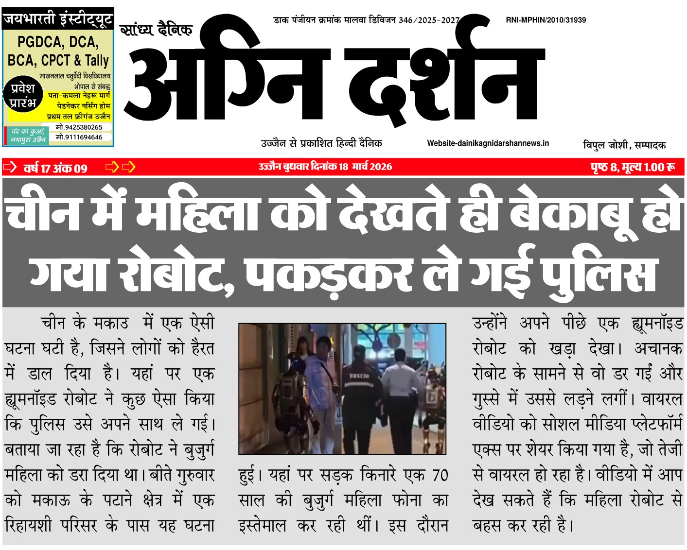 संपादक दैनिक अग्नि दर्शन