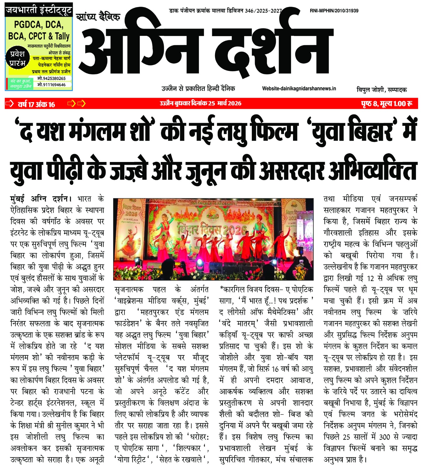 संपादक दैनिक अग्नि दर्शन