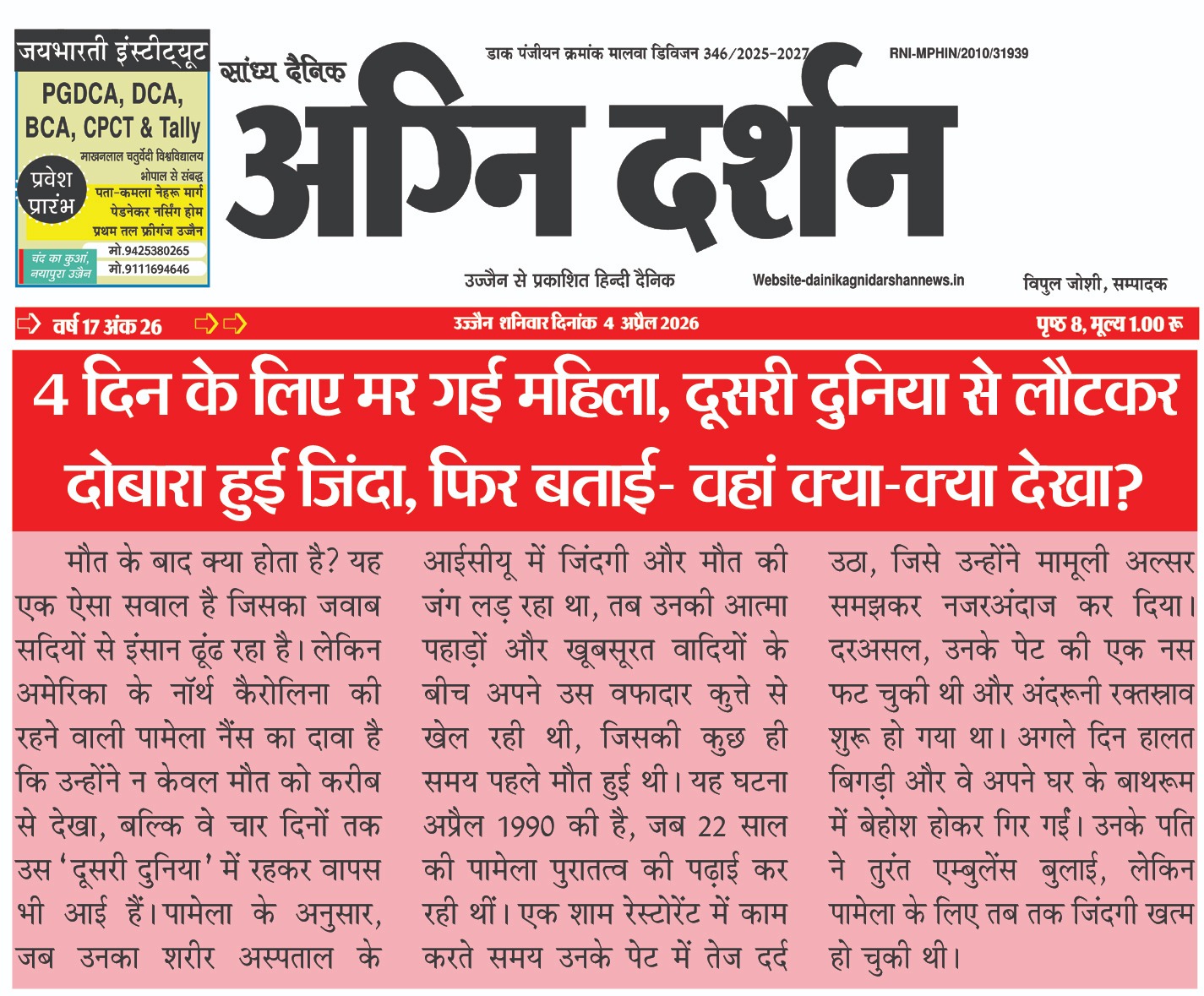 संपादक दैनिक अग्नि दर्शन