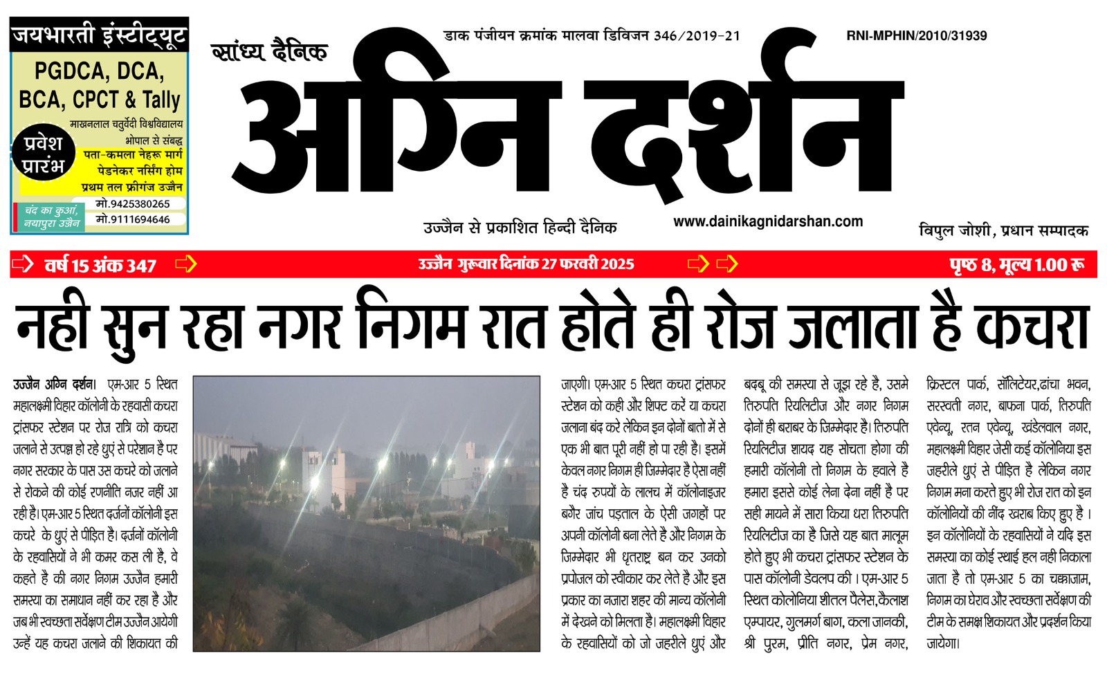 संपादक दैनिक अग्नि दर्शन