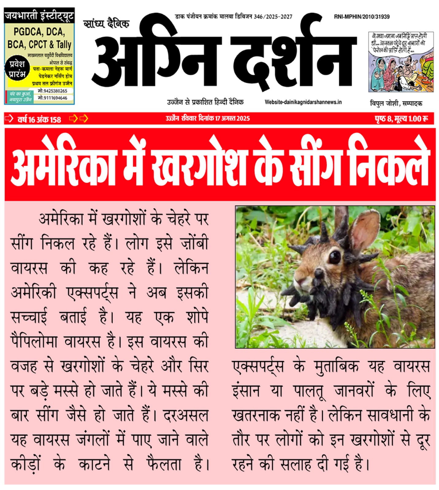 संपादक दैनिक अग्नि दर्शन