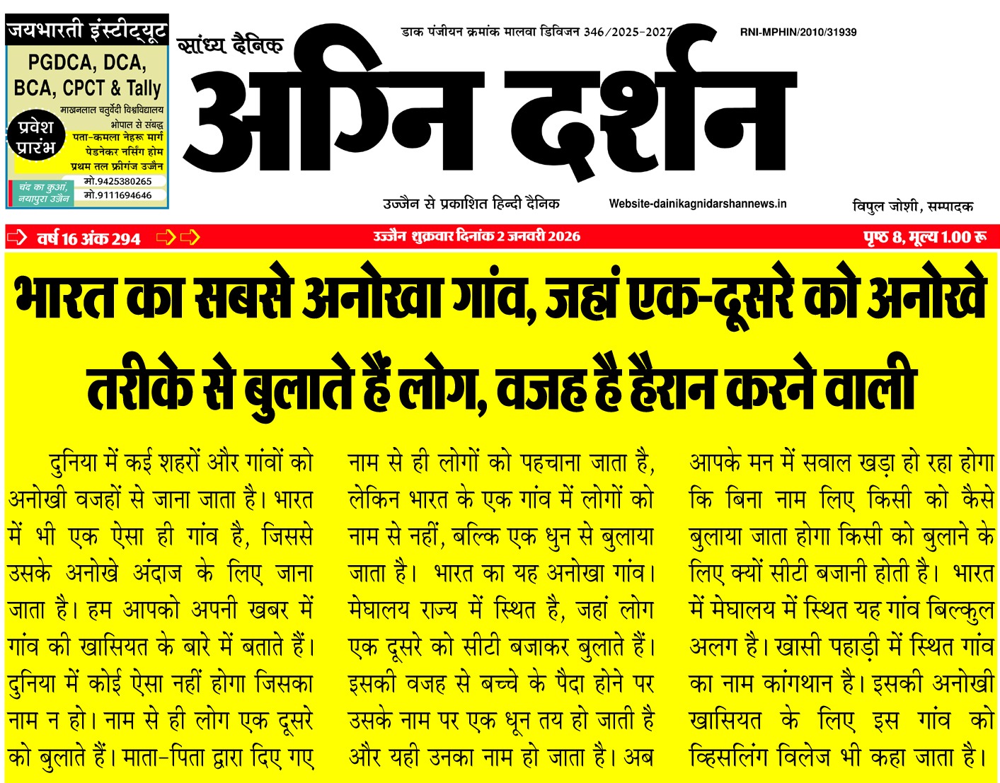 संपादक दैनिक अग्नि दर्शन